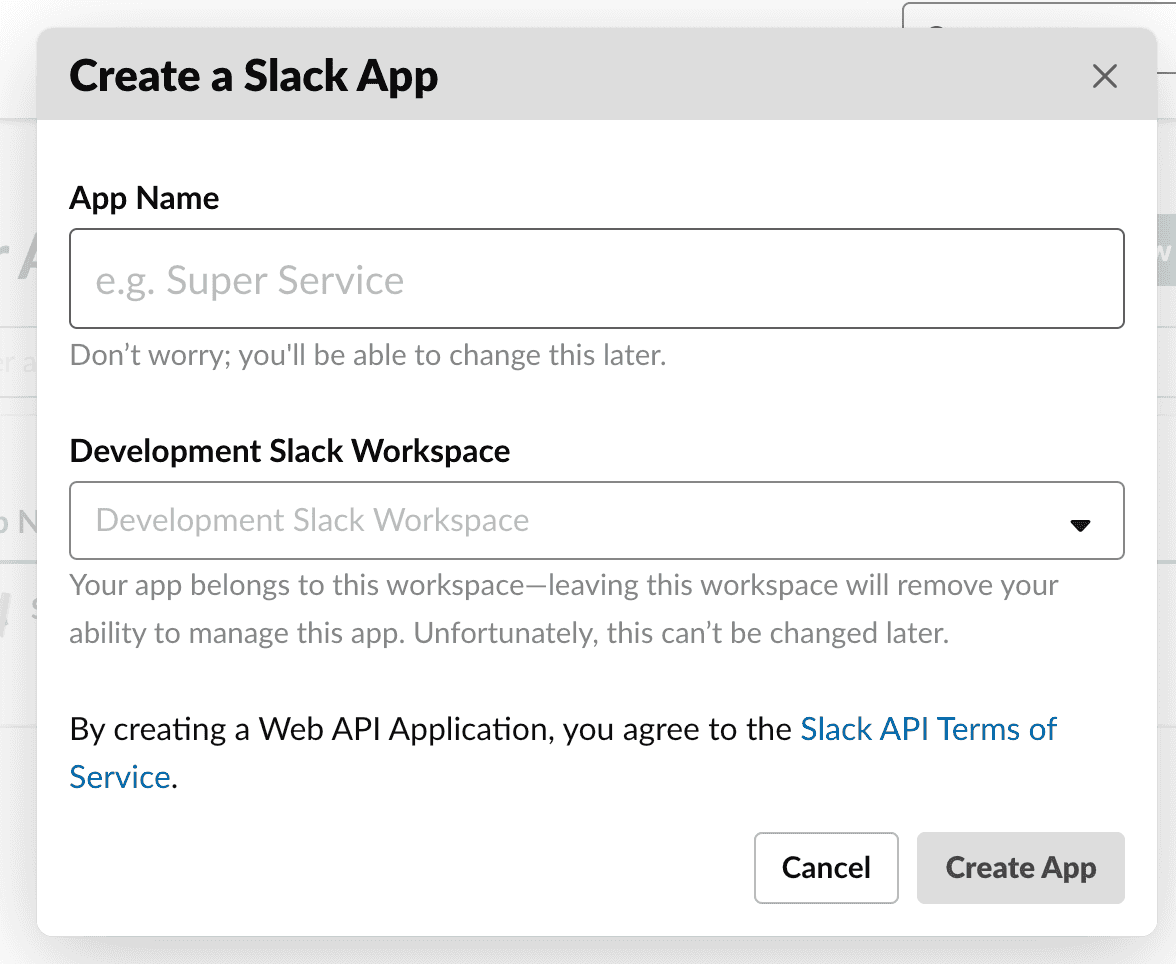 - First, add a new Slack app. Add one for a workspace where you have appropriate permissions.