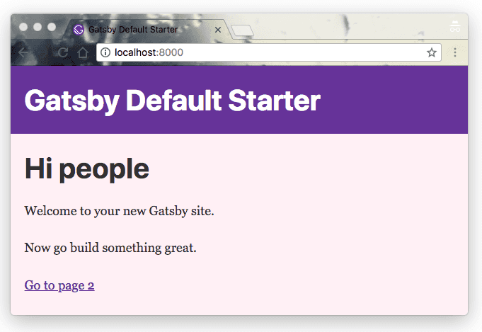 First, open a new terminal window and run the following commands to create a new default Gatsby site and start the development server: