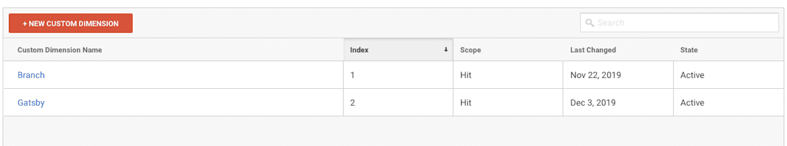 When you have pasted the GA Script into Post Processing, be sure to add your custom dimension, and set it to the name of your branch. Let’s say you have two custom dimensions, and you want to use gatsby.