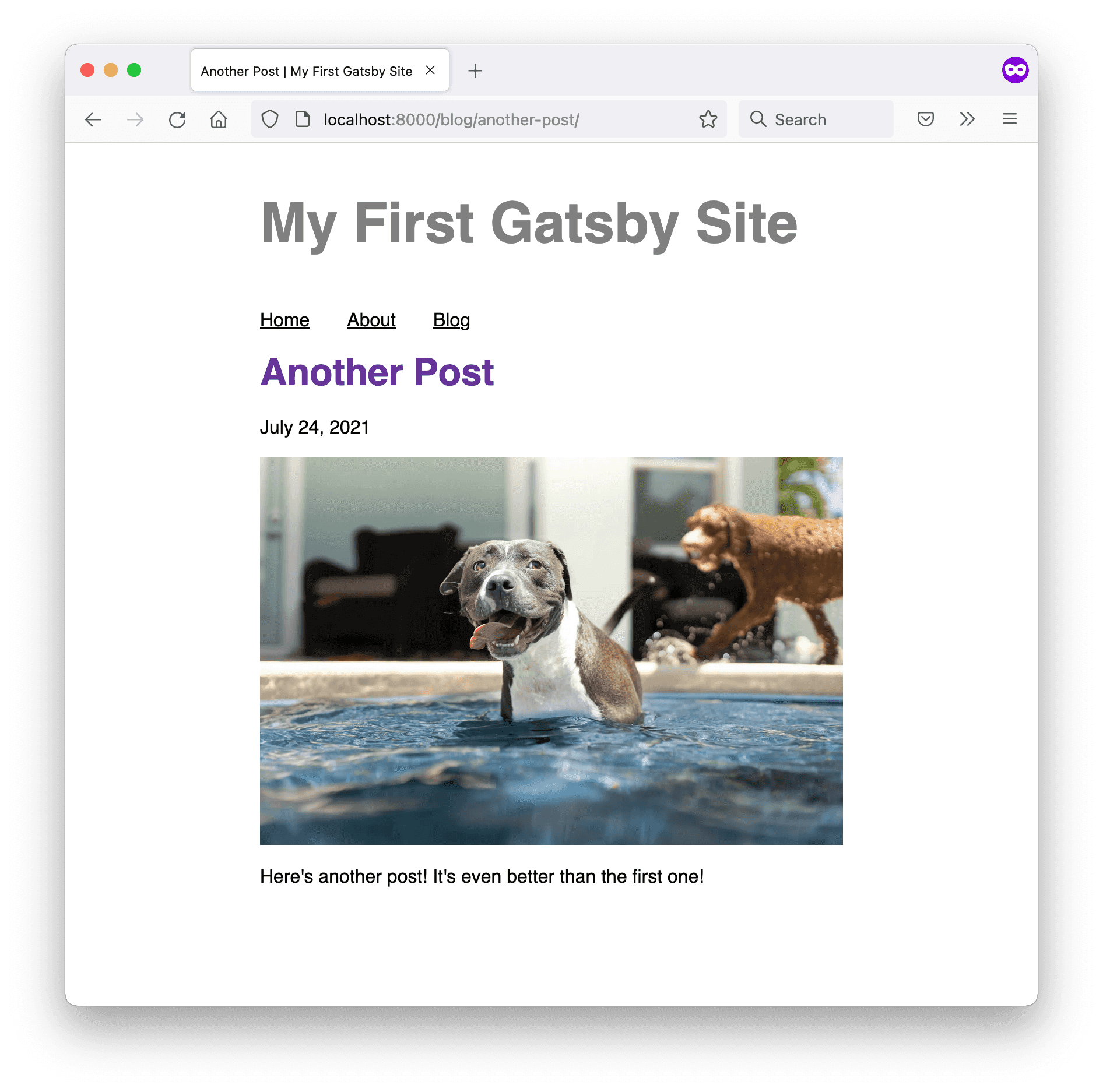 Now, when you visit each of your blog post pages, you should see the corresponding hero image rendered before the body of your post!
