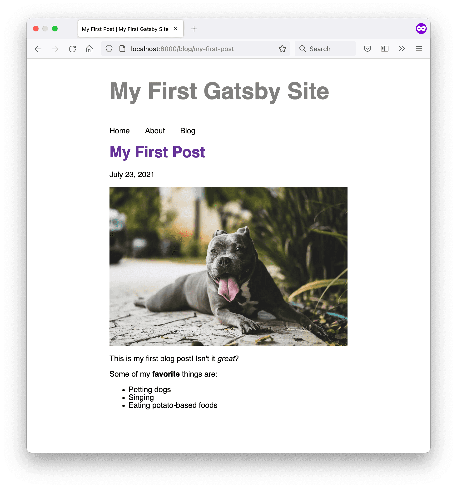 In Part 3, you used gatsby-plugin-image to add static images to your home page. Now that you’ve worked a bit more with Gatsby’s data layer, it’s time to revisit gatsby-plugin-image. This time, you’ll learn how to add dynamic images to your site.