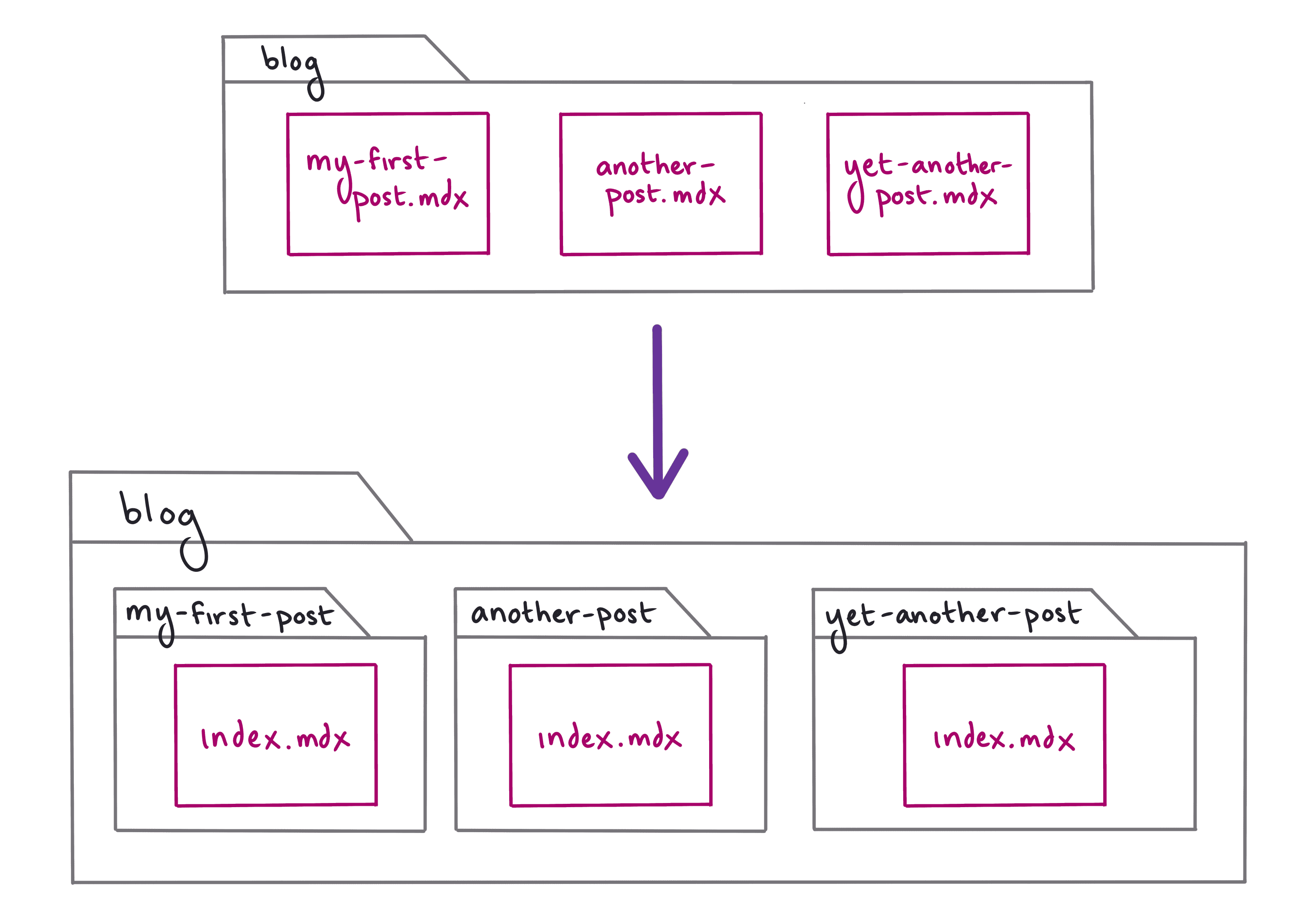 blog/my-first-post.mdxwould move toblog/my-first-post/index.mdx. Similarly, a post atblog/another-post.mdxwould move toblog/another-post/index.mdx.